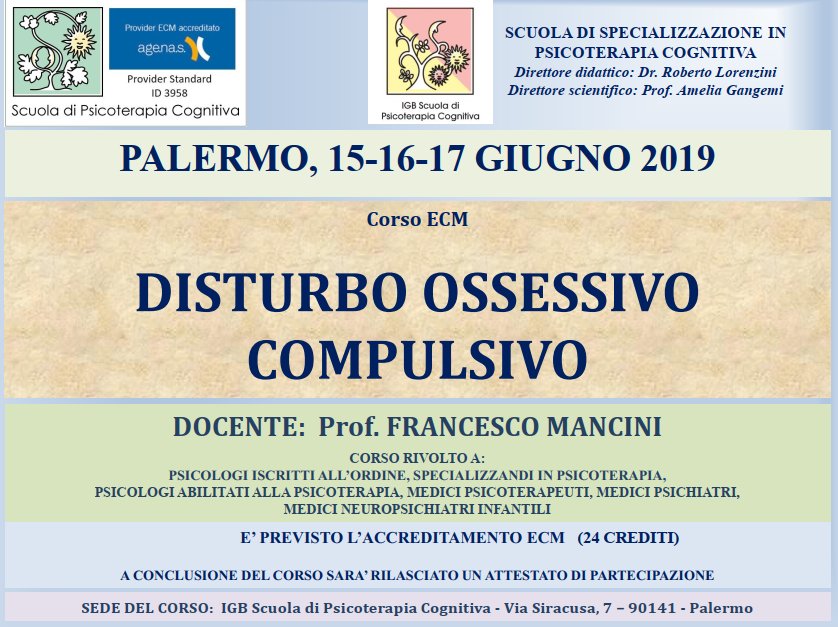 Disturbo ossessivo compulsivo – Roma 15-16-17 giugno 2019