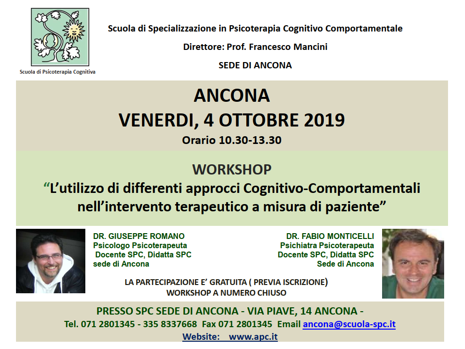 L’utilizzo di differenti approcci cognitivo-comportamentali – Ancona 4 ottobre 2019Eventi 1 minute of reading