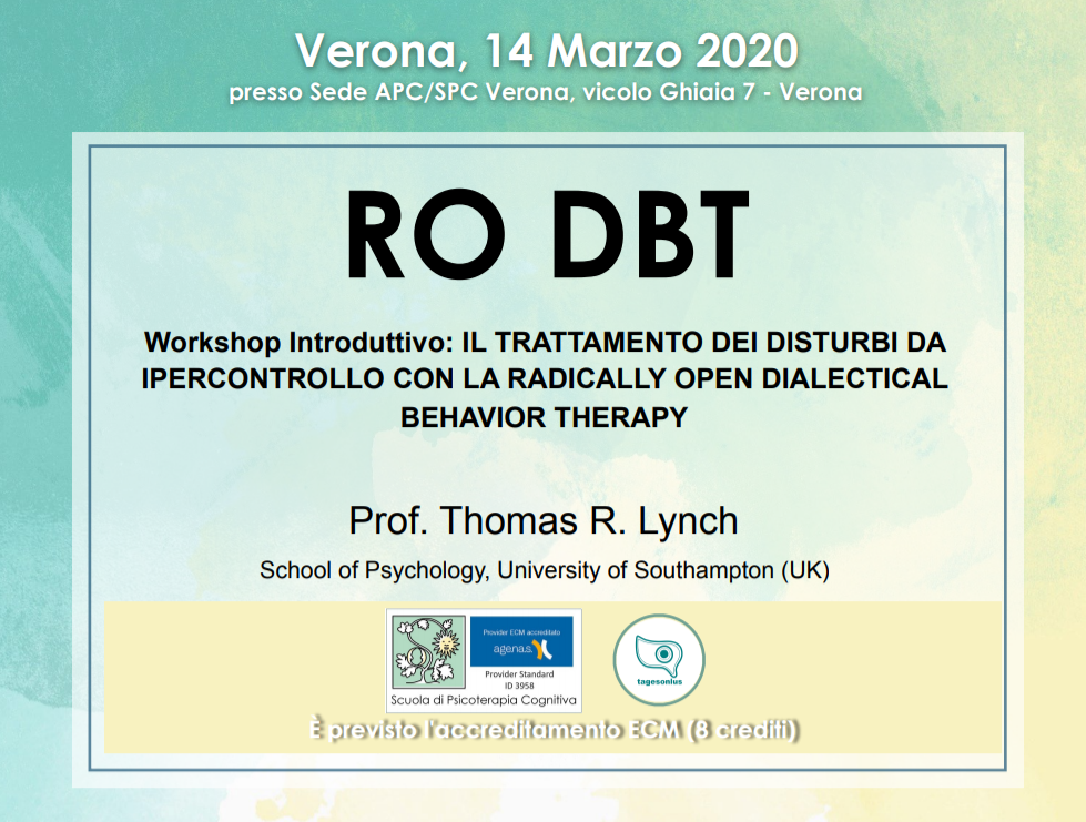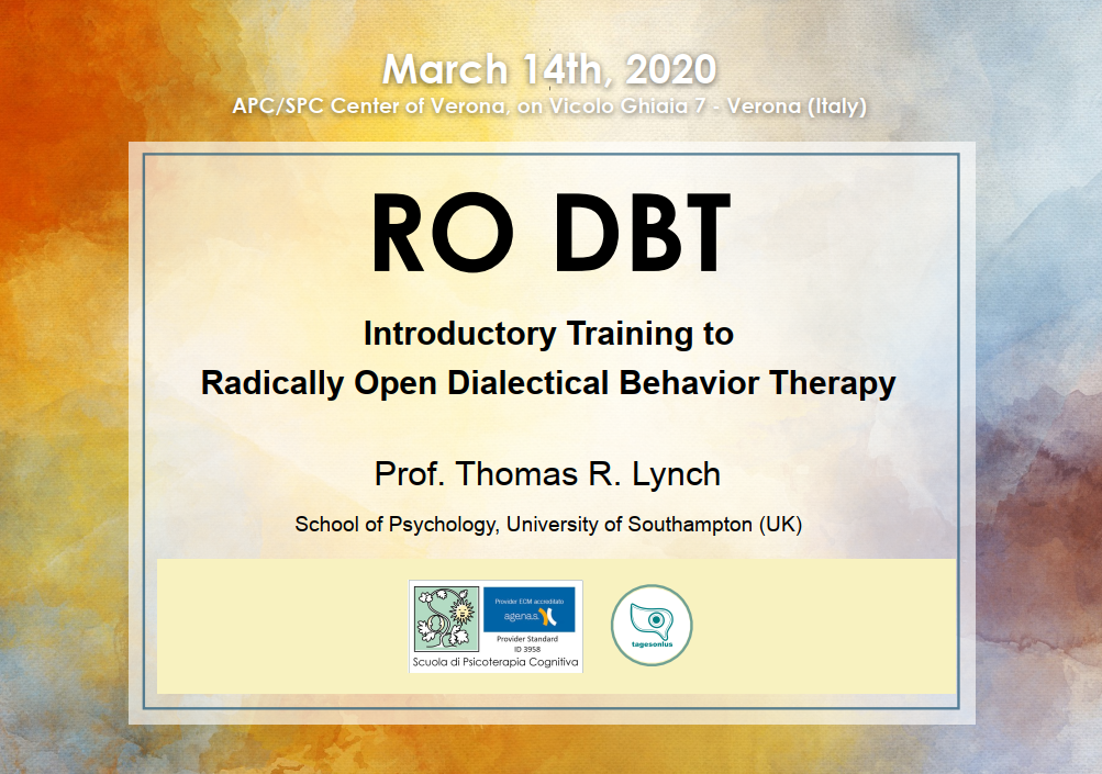 Verona, RO DBT Introductory Training to Radically Open Dialectical Behavior Therapy 14 marzo 2019Eventi 1 minute of reading