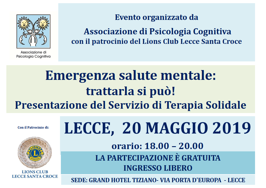 Lecce, Emergenza salute mentale: trattarla di può! Presentazione del Servizio di Terapia SolidaleEventi 1 minute of reading