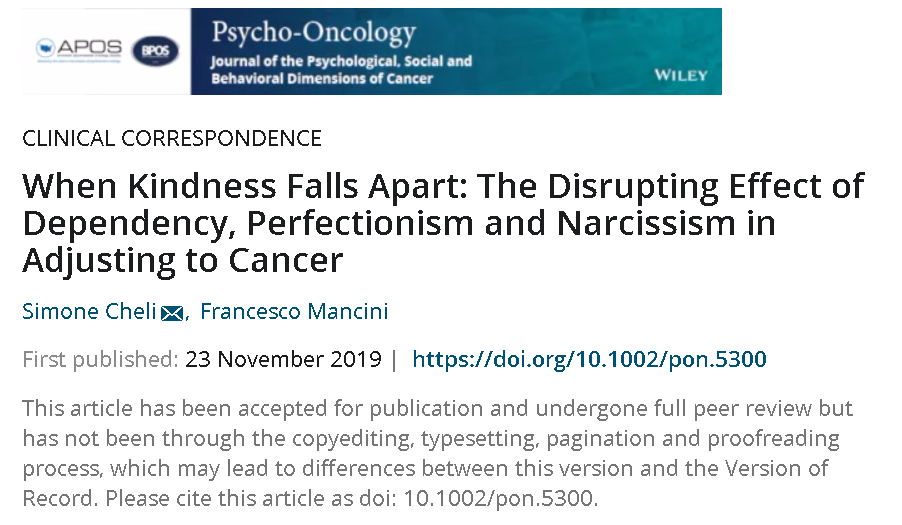 When Kindness Falls Apart: The Disrupting Effect of Dependency, Perfectionism and Narcissism in Adjusting to CancerRicerche scientifiche 1 minute of reading