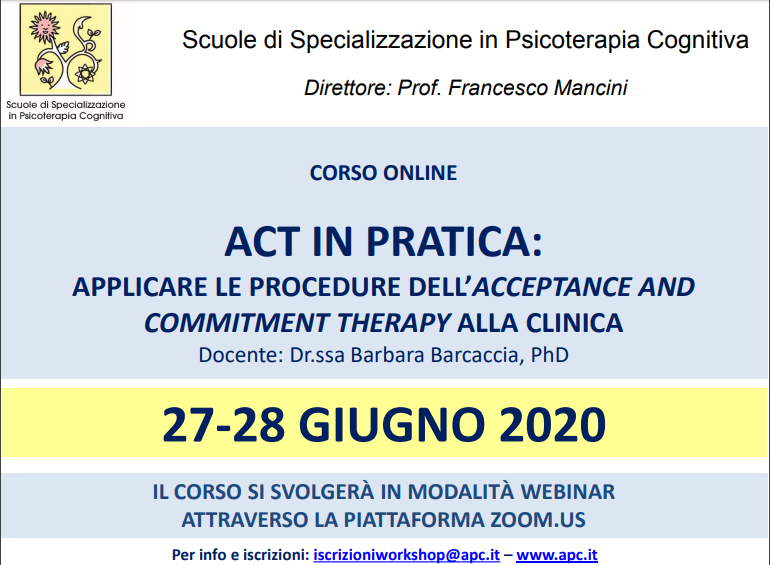 Scopo del corso è di presentare la base teorica e l’applicazione pratica dei princìpi di base dell’ACT utili per il lavoro clinico. Il corso è di tipo esperienziale, pertanto ai partecipanti è richiesta la disponibilità a lavorare sui propri contenuti personali per consentire