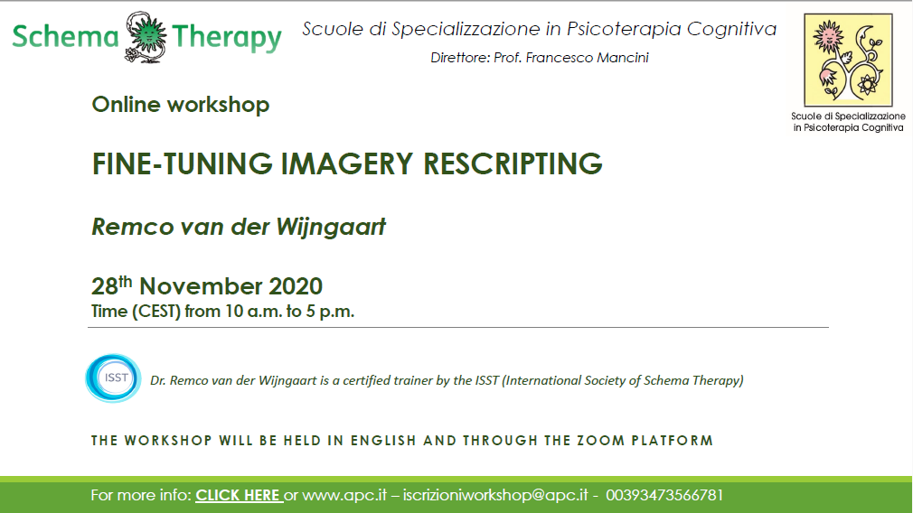 The workshop is aimed at therapists who are already working with Imagery Rescripting and who wish to increase their skills and the effectiveness of this intervention.