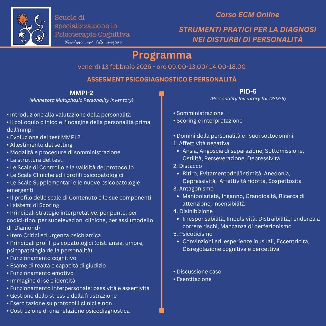 STRUMENTI PRATICI PER LA DIAGNOSI NEI DISTURBI DI PERSONALITÀ – 13-14 febbraio 2026