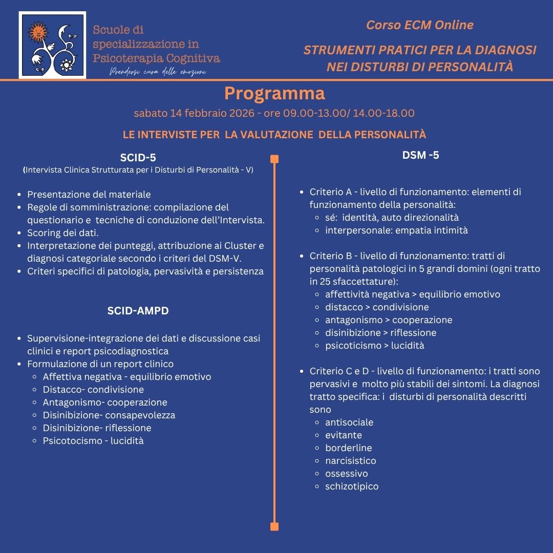 STRUMENTI PRATICI PER LA DIAGNOSI NEI DISTURBI DI PERSONALITÀ - 13-14 febbraio 2026