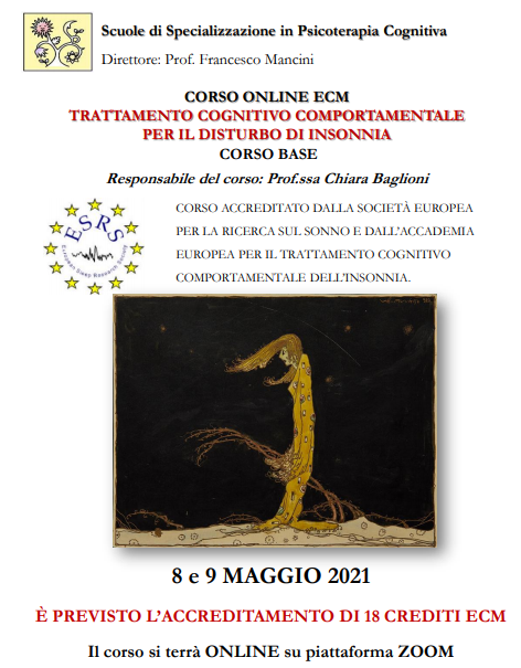“CORSO ACCREDITATO DALLA SOCIETÀ EUROPEA PER LA RICERCA SUL SONNO E DALL’ACCADEMIA EUROPEA PER IL TRATTAMENTO COGNITIVO COMPORTAMENTALE DELL’INSONNIA”